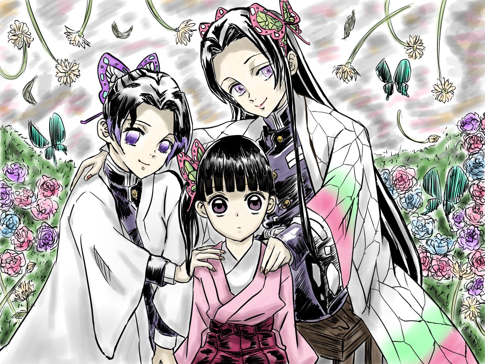 胡蝶三姉妹 綺麗ね 絵 鬼滅の刃 お絵かき 胡蝶しのぶ 創作イラスト イラスト アナログイラスト 可愛い女の子 胡蝶カナエ 栗花落カナヲ Drawing Draw Kimetsunoyaiba Kochoushin しのぶ イラスト カナエ アナログイラスト